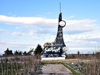 كاميرا سانا وثقت شعارات تنظيم جبهة النصرة الإرهابي المدرج على قائمة الأمم المتحدة للتنظيمات الإرهابية والذي كان يسيطر على البلدة.