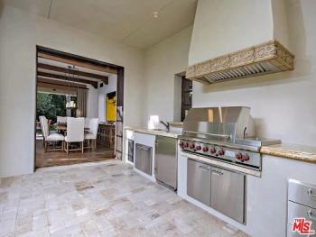 وتحتوي مساحة الطهي أيضاً على جزيرة كبيرة، مع سطح من الغرانيت يطل على منطقة تناول طعام على الطراز العائلي. ويقع الفناء الخلفي الضخم الذي يحتوي على مطبخ خارجي خاص به ومحطة شواء خارج غرفة الطعام مباشرة.