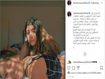وعلق شريف على الصورة قائلاً: "تحت ضغط من بناتي ووالدتهم، طلبوا مني أمسح الصورة.. لكن أنا نزلتها تاني، وأي حد هيكون على أي صفحة تخُصّني .. لو تعدّى حدوده .. هتاخد الإجراء القانوني ضده .. اللي بيوصل للسجن أحياناً".