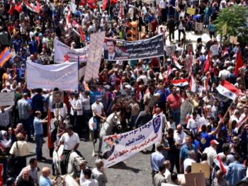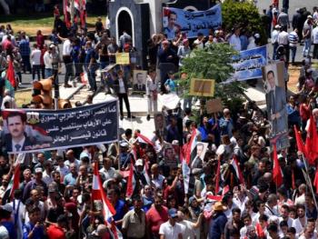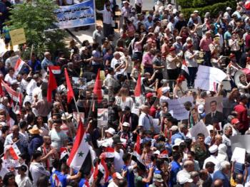 ورفع المشاركون في الوقفة الأعلام الوطنية واللافتات التي تحيي الجيش العربي السوري في حربه على الإرهاب وتندد بالممارسات الظالمة لقوى العدوان تجاه الشعب السوري وتؤكد وقوف السوريين خلف جيشهم وقيادتهم في مواجهة الحصار الجائر.