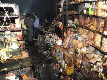أخمد عناصر إطفاء دمشق مساء الامس حريقاً اندلع في مستودعات للسكاكر والمواد الأولية الخاصة بها في سوق البزورية بدمشق.