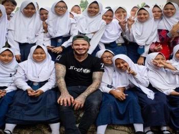 ونشر بيكهام أمس الأحد، عبر حسابه في موقع "إنستغرام"، صورة له بين عدد من الفتيات المحجبات وعلق عليها قائلا: "يجب أن تتاح لجميع الفتيات، أينما كن فى العالم، فرصة التعلم وتحقيق إمكاناتهن".