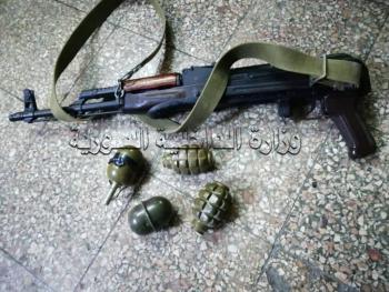 وفي بيان لها على صفحتها في فيسبوك قالت وزارة الداخلية إنه ونتيجة البحث والمتابعة المستمرة عن المطلوبين والمشبوهين تمكنت دورية من فرع الأمن الجنائي في اللاذقية من إلقاء القبض على أربعة أشخاص من أرباب السوابق بجرائم السرقة، وهم المدعوون: (رافع . ع) و(علاء. ع)، و(شوقي. ب)،و(عمر .ج)، ضبط بحوزة اثنين منهم أسلحة حربية مع ذخيرتها وقنابل يدوية وحشيش وحبوب مخدرة، وجهاز لا سلكي ( تيترا) ومبلغ مالي، تم مصادرتها جميعها مع دراجة نارية مهربة.