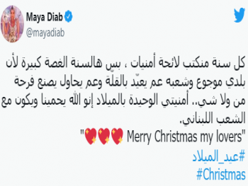 بمناسبة عيد الميلاد المجيد، عبرت الفنانة اللبنانية مايا دياب عن أمنيتها في العيد حيث كتبت على صفحتها على موقع التواصل الإجتماعي :"كل سنة منكتب لائحة أمنيات ، بس هالسنة الغصة كبيرة لأن بلدي موجوع وشعبه عم يعيّد بالقلّة وعم يحاول يصنع فرحة من ولا شي.. أمنيتي الوحيدة بالميلاد إنو الله يحمينا ويكون مع الشعب اللبناني. عيد ميلاد مجيد أحبائي".
