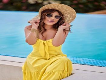 وظهرت نجوى كرم في الصور إلى جانب حوض السباحة، ترتدي فستاناً أصفراً، ونظارات شمسية أخفت جمال عيناها. وأرفقت الصور بنصيحة للمتابعين، قالت فيها: "بغض النظر عن أي شئ، أنظر دائماً الى الجانب المشرق من الحياة".