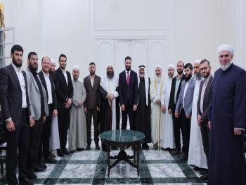 التقى رئيس الجمهورية العربية السورية بوفد من علماء ومشايخ محافظة حلب خلال زيارته للمدينة.