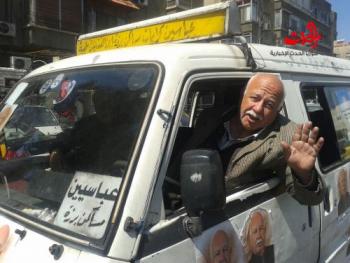 سورية الحدث - سلام تركماني -جدرانٌ وساحاتٌ وخيمٌ ومندوبون وولائمٌ شاركوا بالحملات الانتخابيّة كالعادة في كلّ دورة انتخابيّة لمجلس الشعب، لكن الغريب أنّ ميكرو باص أحد المرشحين يشارك أيضاً في الإعلان لصاحبه."من نبض الشعب وللشعب " شعار المرشّح المستقل (جمال الدين مرسي) فئة (ب) الذي يحمل في يمينه شهادة كليّة الاقتصاد وفي يساره شهادة سوق عموميّة أهّلته لممارسة عمله كسائق ميكرو باص خط مساكن برزة – عباسسين.استوقفني مشهد حملته الإعلانيّة البسيطة -على غير ما تشهده الحملات الأخرى باهظة التزييف والمجاملات - و التي كانت عبارة عن صور ملأت ميكرو الباص الخاصّ به الذي يصعده عشرات الركّاب يوميّاً ليلاحظوا بعد دقائق أنّ السائق هو ذاته المرشّح لمجلس الشعب، والأمر الذي يثير دهشتهم وفضولهم بساطة الحملة وابتعادها عن الماديّات والتزييف إضافةً إلى شفافيّة برنامجه الانتخابيّ النابع من معاناة الشعب فهو يعد ركّابه مثلاً أن يجد حلاً لتضخم الأسعار.الأستاذ (جمال الدين مرسي) هنيئاً للشعب بكَ وبتواضعكَ وبترشيحكَ، مرشّحاً من الشعب وللشعب.